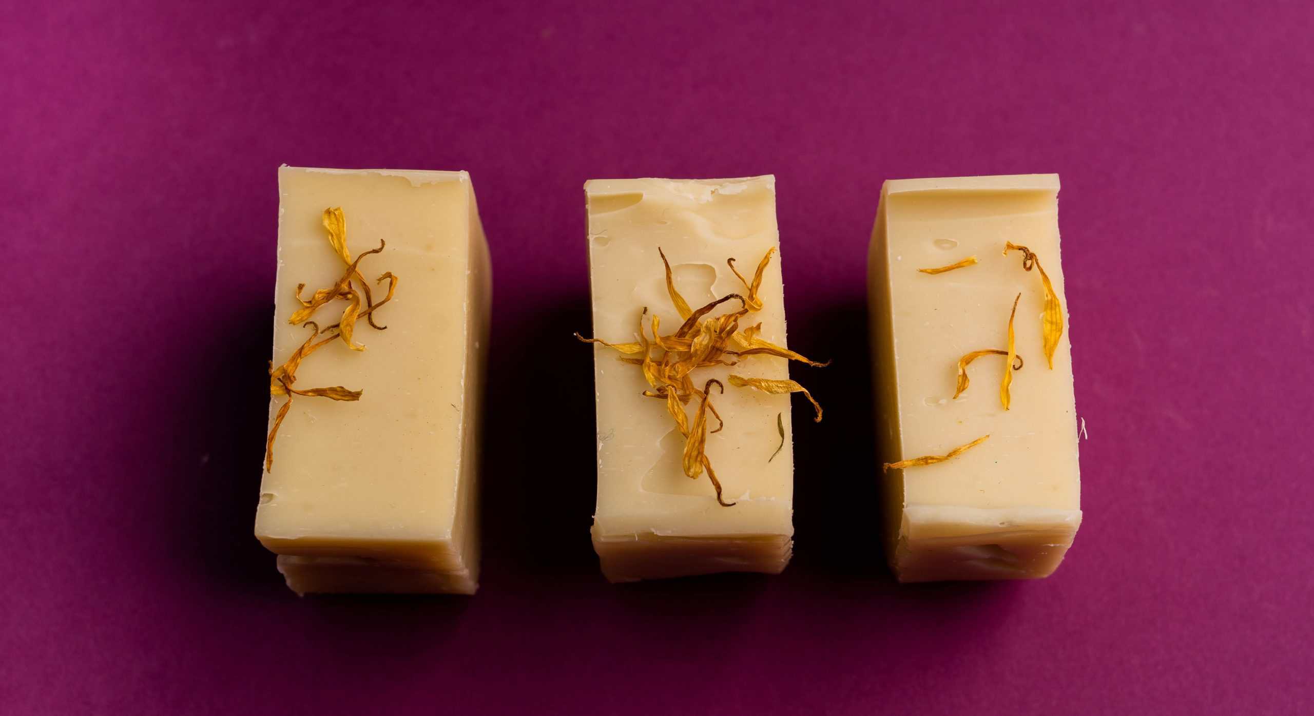 Meine Ringelblume-Haarseife hat eine Überfettung von 5% und jeder kann sie verwenden. Es passt zu jeder Haarart, auch zu gefärbtem Haar, und muss nicht mit Essig ausgespült werden.