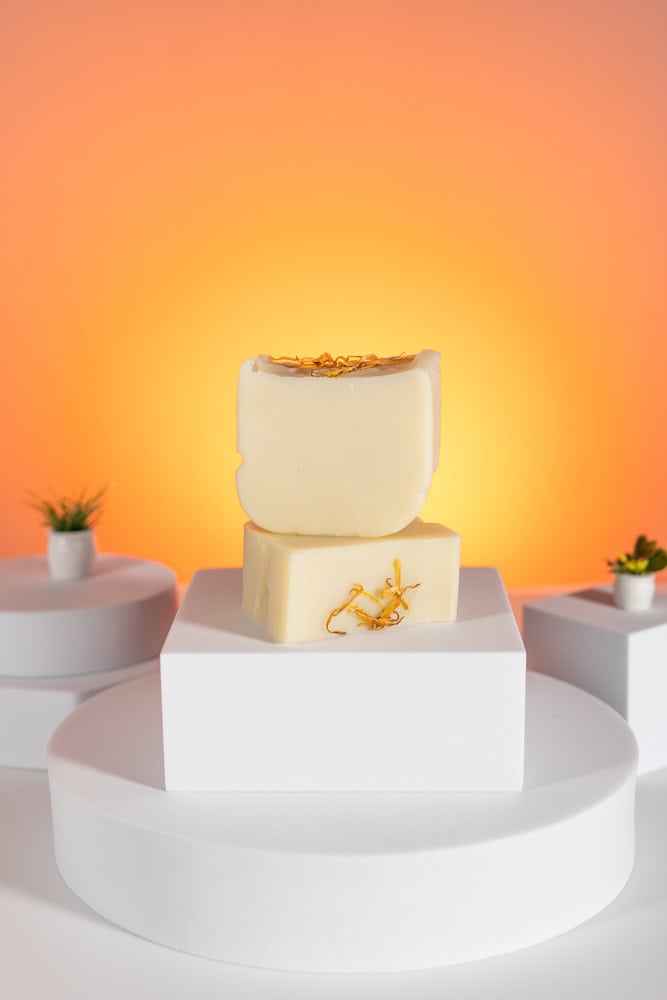 Die Ringelblumen-Haarseife, das ich von Hand herstelle, ist mit einem Auszug aus Ringelblumenblüten hergestellt, da die Blütenblätter dieser Blume die Haut perfekt befeuchten und erweichen. Sie helfen, Irritationen zu beruhigen und zu lindern. Es ist auch für Menschen mit trockener, schuppiger oder allergischer Haut empfohlen.