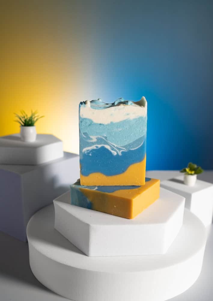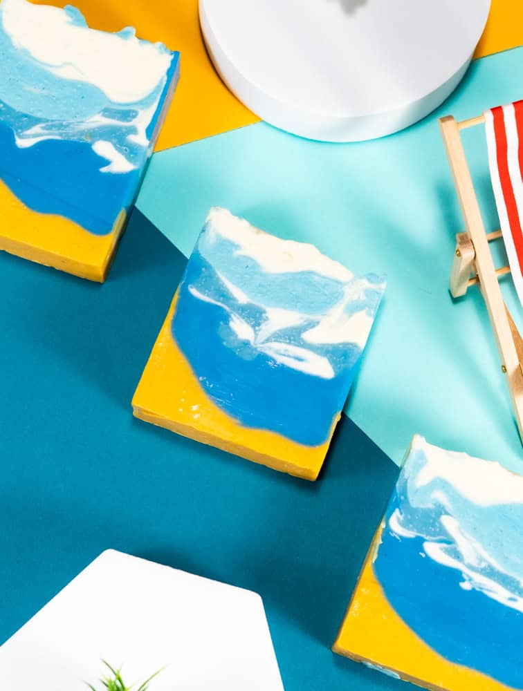 Manchmal, wenn ich an kalten, bewölkten Tagen mit meinen Freunden spreche, erzählen wir uns, dass nur der blaue Himmel und das Rauschen des Meeres fehlen. Diese Seife ist der Himmel und das Meer Ich mag es, die Sonnenstrahlen auf meiner Haut zu spüren. Ich liebe den Sommer, wenn ich an den Strand gehen und einfach ohne Pulloverjacke und warme Schuhe da sein kann, aber der Sommer ist kurz. Zu kurz. Deshalb habe ich diese Seife kreiert. Es ist schwer zu machen, aber es sieht genauso aus, wie es riecht, und ich wollte es wirklich zeigen. Wenn Sie sie in die Hand nehmen, werden Sie die Brise des Meeres und des blauen Himmels spüren. Hier ist die Beschreibung dieses Duftes. Es hat eine sehr gute Balance von Düften und deshalb mögen es sowohl Männer als auch Frauen.