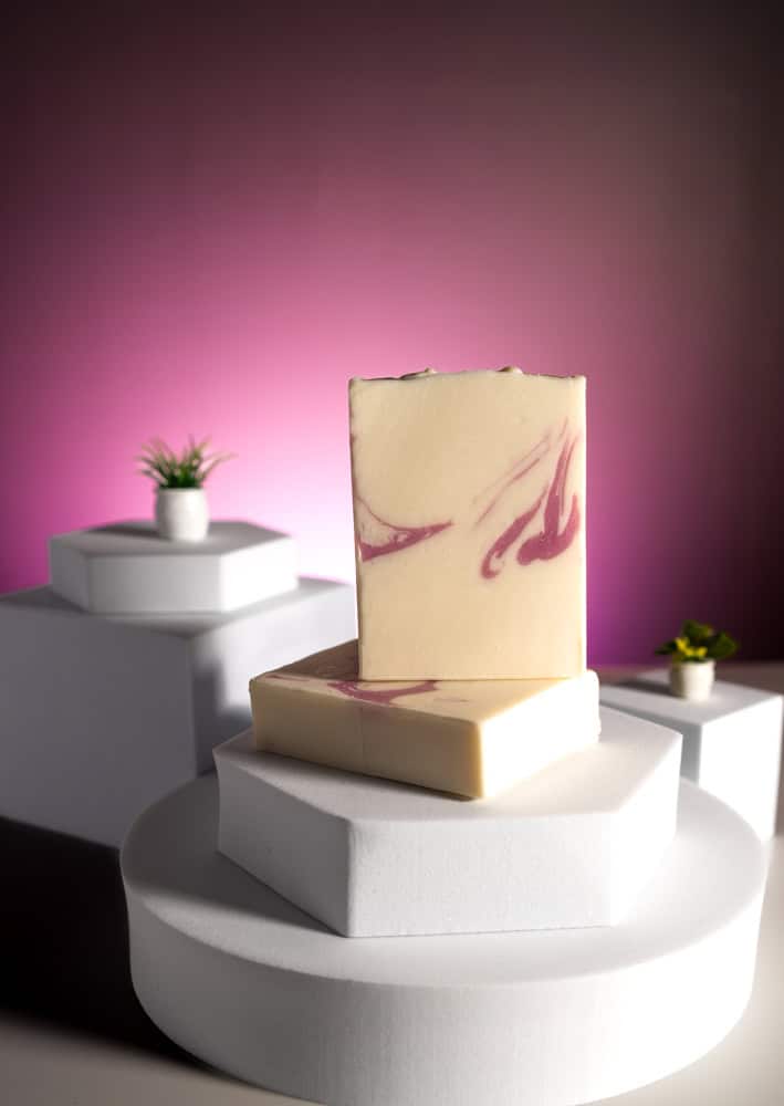 Unsere Seife enthält auch Olivenöl und Rizinusöl, wodurch wir Seife erhalten, die schön schäumt, ohne chemische Zusätze wie SLS, die die Haut austrocknen.